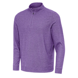 Made with our new, ridiculously soft brushed heather fabric, this 1/4 zip pullover will provide you with a layer of warmth on and off the course. Subtle 1/4 Zip Pullover is 91% polyester/9% spandex signature buffed fleece (260gsm) with an 8-inch zipper with covered placket dyed to match the tipped plastic zipper pull. Also features a self-fabric cuff and hem, and Antigua 'A' at right cuff. Check inventory at antiguacorporate.com and register to place blank orders online.